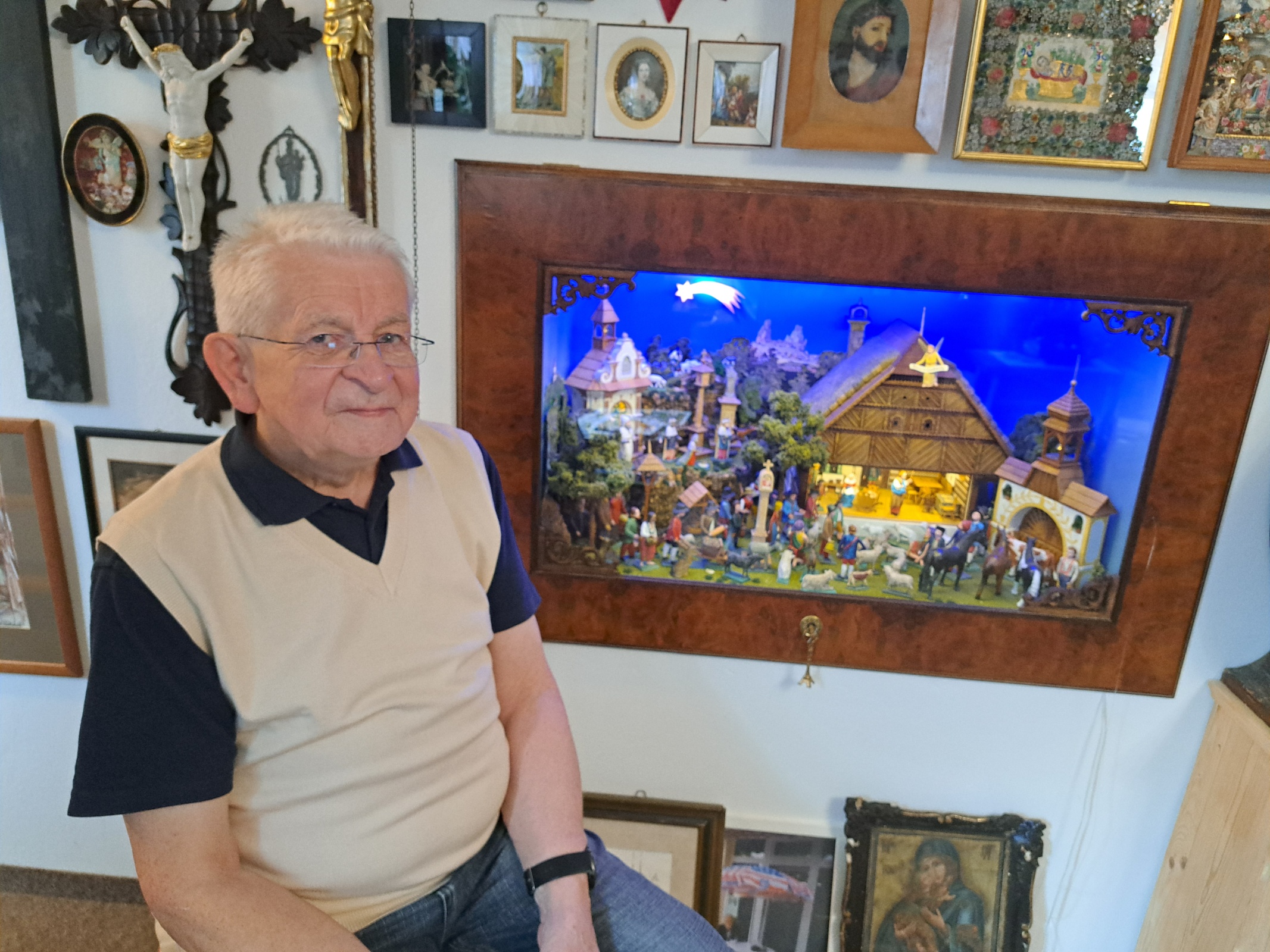 Mělnický historik Karel Lojka píše knihy, fotografuje a sbírá hrací skříňky, které sám restauruje. S obrovským nadšením také opravuje staré betlémy. Polámaných figurek zrestauroval už několik desítek. Kromě času a trpělivosti k tomu potřebuje znát devatero řemesel.