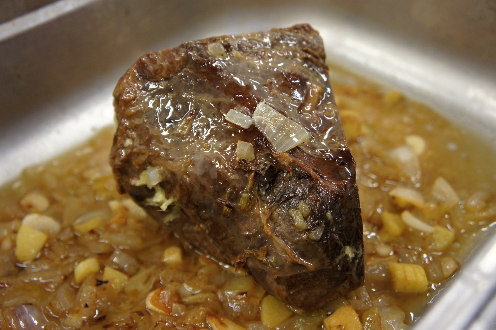 Pečeně se vůbec nemusí otáčet. Stačí, aby se maso opeklo rovnoměrně ze všech stran. Opečené maso následně dáme do kastrolu se základem, například s vínem, přikryjeme pokličkou a vaříme.