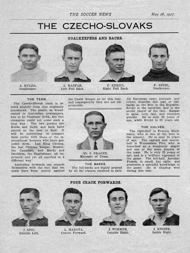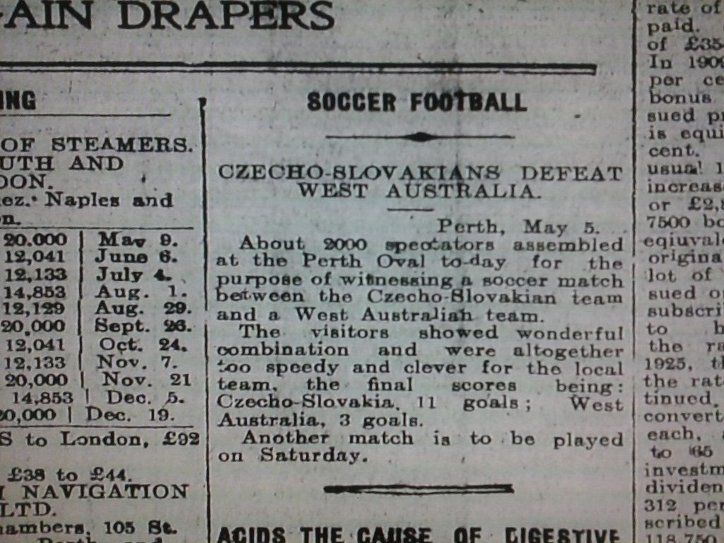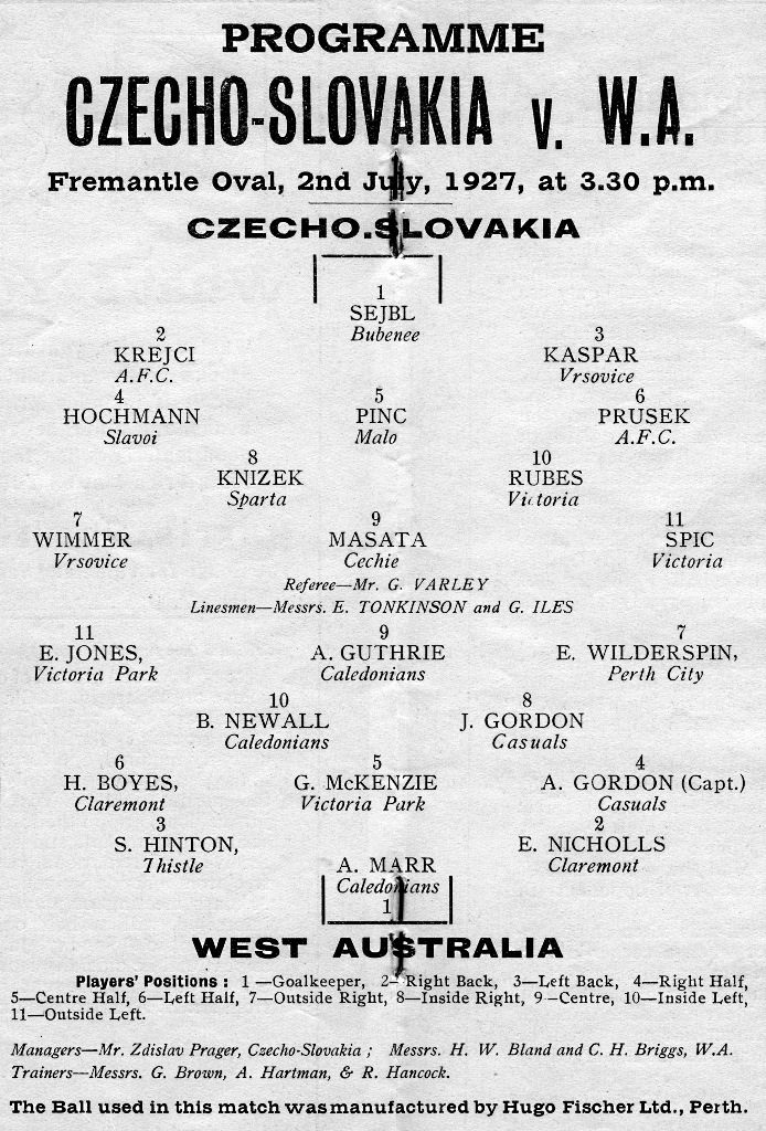Po 23 dnech od vyplutí z Neapole doplula loď Orsova v úterý 3. května 1927 do australského přístavu Fremantle a posléze do města Perth, kde také sehráli první zápas (porazili výběr Západní Austrálie 11:3).