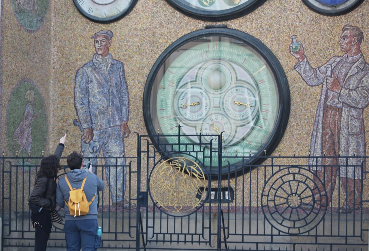 Olomoucký orloj zdobí mozaika Karla Svolinského. Tvoří ji čtyři miliony skleněných kostiček a kamenů
