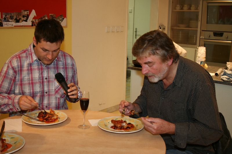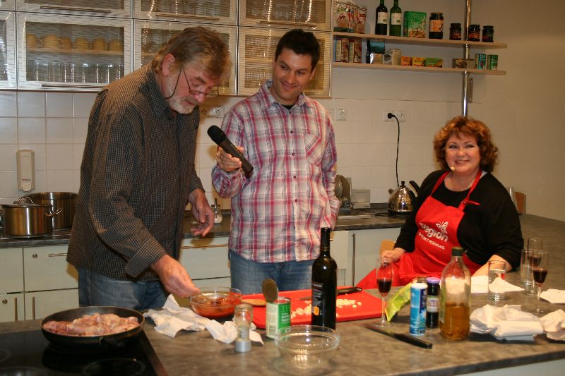 Jak můžete vidět i na fotkách, vaření se tentokrát ujal sám Vlaimír Kratina. Naďa Konvalinková mu samozřejmě pomáhala a Patrik Rozehnal na všechno dohlížel. Od Soni Jindrové se v reportáži dozvíte něco o pěstování a zpracování černých oliv. Vladimír bude samozřejmě podroben i Rychlovýslechu a společně s Naďou se poperou s pěticí "kuchyňských" výrazů ve Slovní hře.