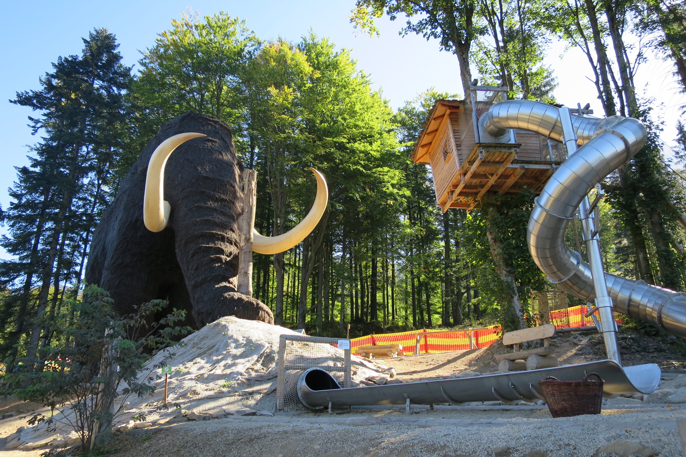 Ve druhém patře mamutího modelu se ukrývá malý labyrint a další herní prvky. Projít můžete třeba lesem lián, musíte překročit i zbytky kmenů přesliček. Do druhého patra ústí i lanový šplhací komín a lezecká stěna. Prolézacím tubusem se můžete dostat i do jeskyně. A pokud ve tmě nahmatáte speciální tlačítko, obklopí vás mohutný mamutí řev. Ven se z mamuta dostanete buď po točitém schodišti, nebo je tu další možnost. Sjet dolů chobotem.