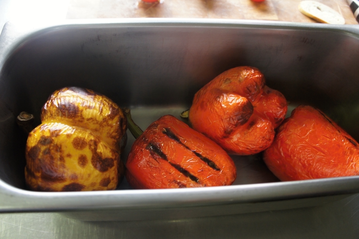 - Jakmile je slupka u paprik černá, uzavřeme je asi na 5 minut do mikrotenového sáčku.