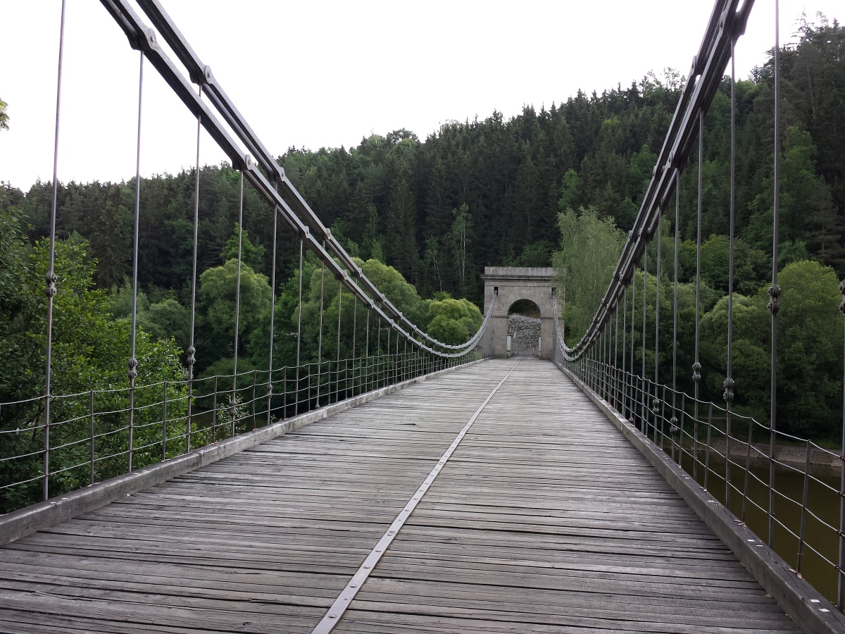 U obce Stádlec v jižních Čechách najdete poslední empírový řetězový most v České republice – 157 metrů dlouhá a 6 metrů široká stavba bývá častým cílem turistů a oblíbeným objektem pro fotografy. Jen se špatně v sevřeném údolí řeky Lužnice hledá.