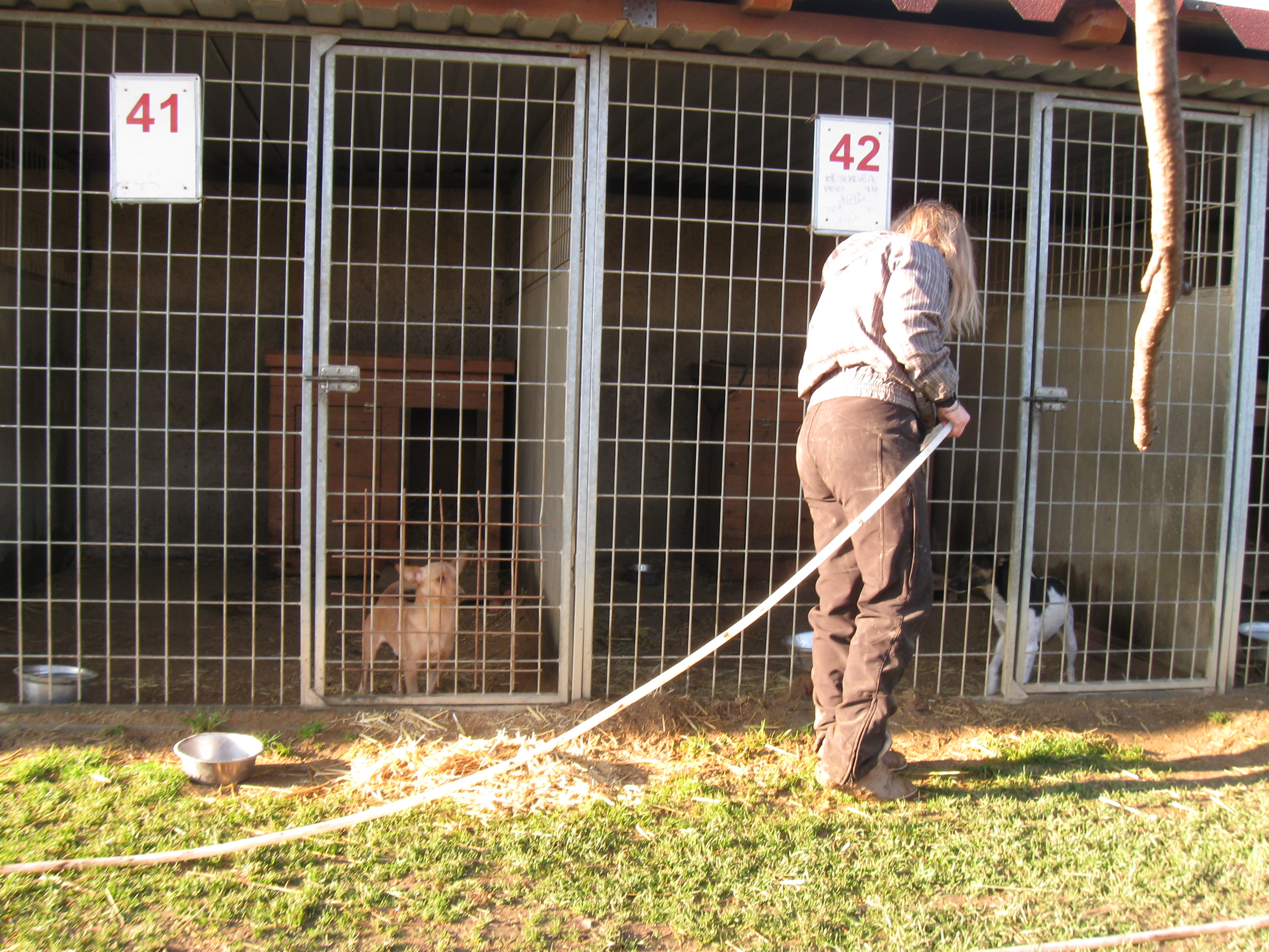 V útulku mají v současné i několik koček. „To jsou kočky, které nám tu třeba někdo nechal v krabici. Tak nám tu teď chytají myši a jsou to naše kočky „služební“,“ dodala vedoucí útulku s úsměvem.