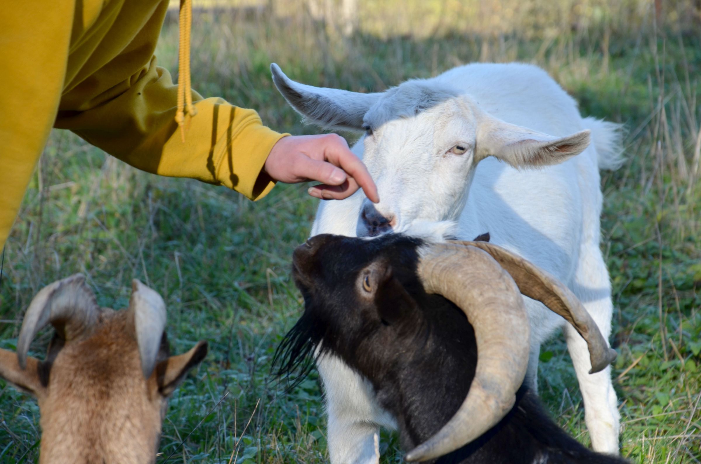 Prošli jsme se prosluněnou podzimní přírodou, tak se na kozy vůbec nezlobím. A konečně udám dvě kila mrkve, která jsem jim přinesla. Nakrájíme je s Ľubomírem na kousky, chlupatou partu nakrmíme a pak poslouchám příběhy kozích dam a kluků, které mi vypráví.