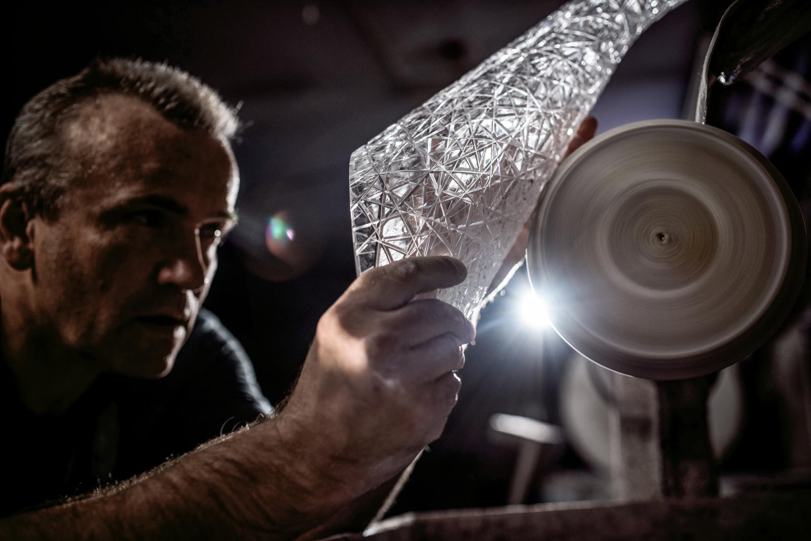Nejsložitější práce představuje ruční broušení, které u každé trofeje zabere dlouhé hodiny. „Je to tak 20 až 25 hodin na jeden pohár. Je potřeba si to předreslit, nahrubo nabrousit, potom vyjemnit a vyleštit," říká Pavel Vydra, který na úpravu dohlížel.