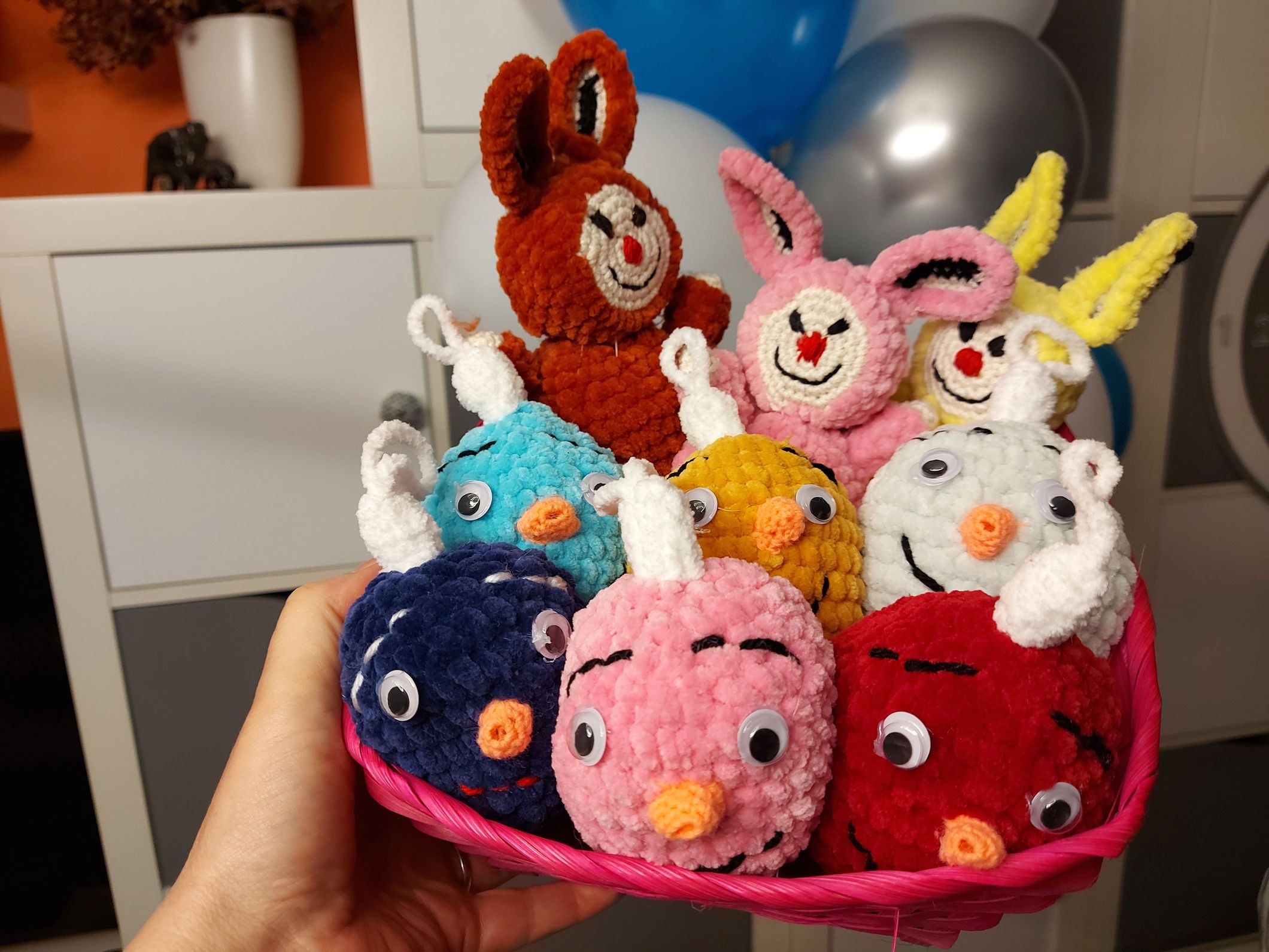 Paní Pekárková mě vítala s košíkem plným vánočních ozdob. „Nejsou skleněné, jsou nerozbitné, protože jsou uháčkované. A nejenom vánoční ozdoby, ještě labubáky jsem uháčkovala. To je teď móda, takoví medvídkové pro radost,“ usmívá se paní Pekárková. Ví, co u dětí hraje prim, sama má dvě pravnučky a taky malého vnoučka.