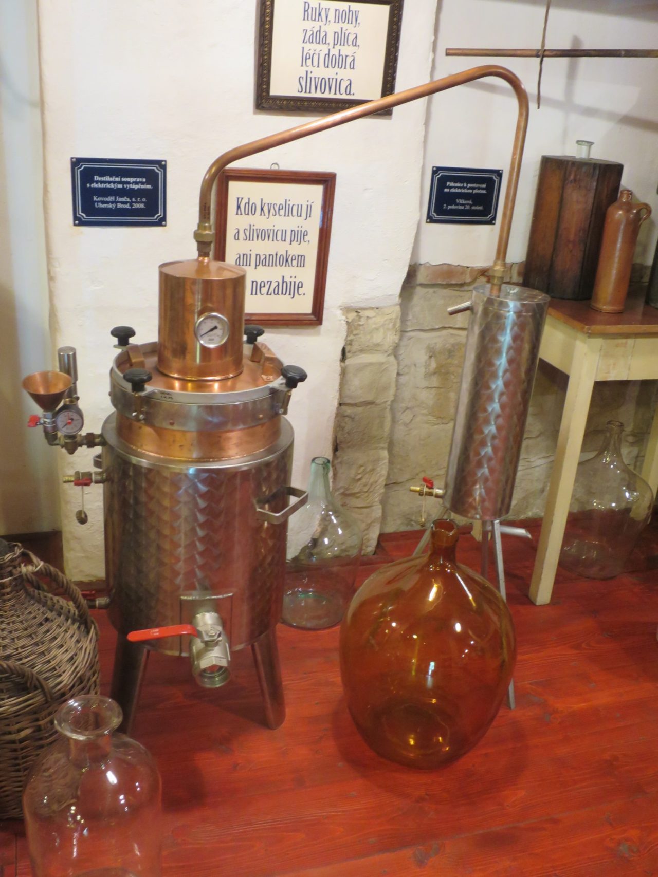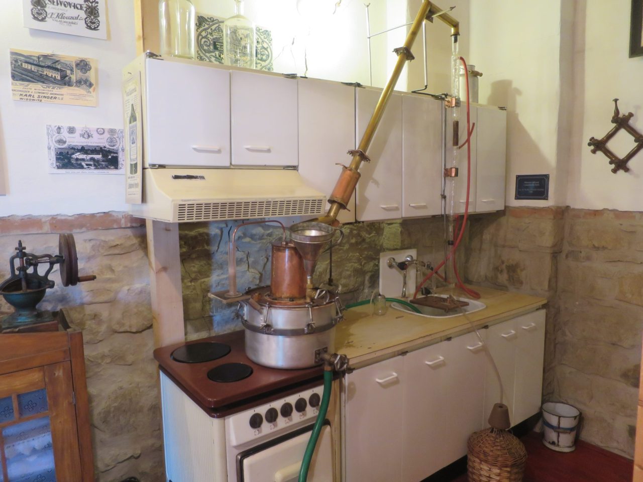 Textová i obrazová část výstavy ukazuje příchozím nejstarší zmínky o výrobě pálenky, která byla středověkými lékaři považována za vysoce ceněný léčebný prostředek. Mezi největší kuriozity muzea patří nejmenší pálenice, která měří pouhých 144 milimetrů. „Je zapsána v Guinessově knize rekordů a je plně funkční,“ dodává Božena Kovářová.