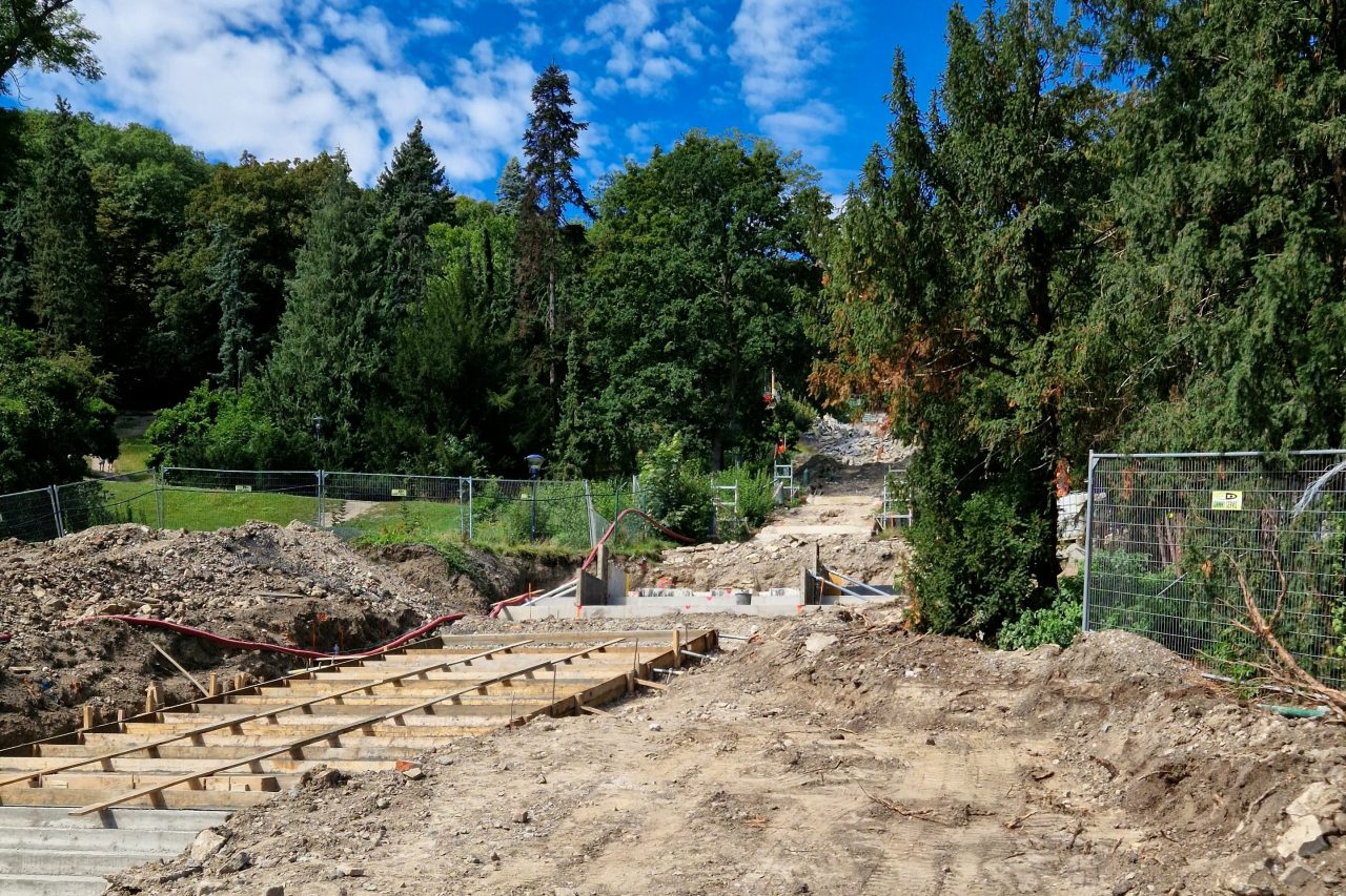 Obvyklá trasa lanovky na petřínském svahu teď vypadá jako velké dětské pískoviště. Všude jsou bagry a další těžká technika, terén je úplně rozkopaný a všude se pohybují dělníci. Právě zajištění svahu je jedna ze součástí rozsáhlé rekonstrukce dráhy. Z necelých pěti set metrů délky je základ zatím hotový zhruba na sedmdesáti metrech.
