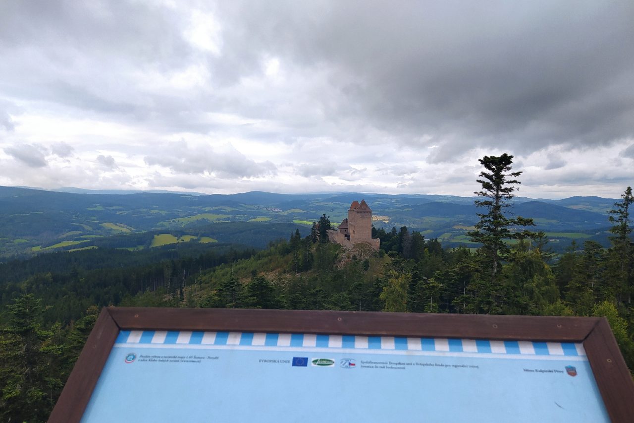 Z Pustého hrádku se vám otevře krásný výhled na hrad Kašperk a střední část Šumavy